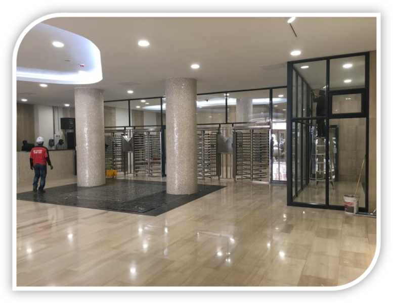 This billion rand upgrade to the entertainment centre took less than 1 year to complete, and we feel privileged to have been part of a team working for a client such as Sun International. All items installed for this project was frameless, this included all the fixed shop fronts, automated sliding doors, sliding stacking doors and pivot doors on level 1 of the centre. Contractor – ZPC Group